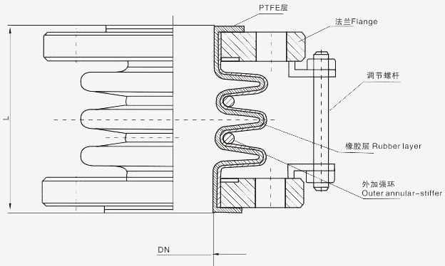 公稱(chēng)直徑DN(mm) | L | 波數(shù) | 軸向補償量△X(mm) | 徑向補償量△Y(mm) | 角向補償量△θ(O) | 公稱壓力(lì)PN(MPa) |