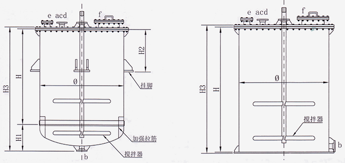 注:以上參數僅供參考,具體規格根據用戶需要製作(管口(kǒu)用途:a:出料口;b:進料口;c:備(bèi)用口;d:放空口;e:視鏡口;f:人孔)。 |