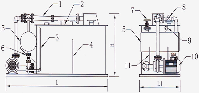 型號 最大真空度MPa 保證真空度MPa 最大抽氣量M³/h 外形尺寸 配套(tào)耐腐離(lí)心(xīn)泵